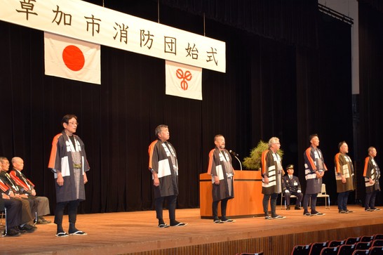 草加市消防団では、郷土愛護の精神のもと、本年も職務を遂行してまいります。今後とも消防団活動にご理解とご協力をお願いします。