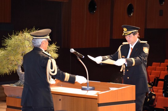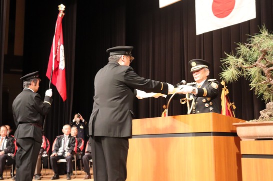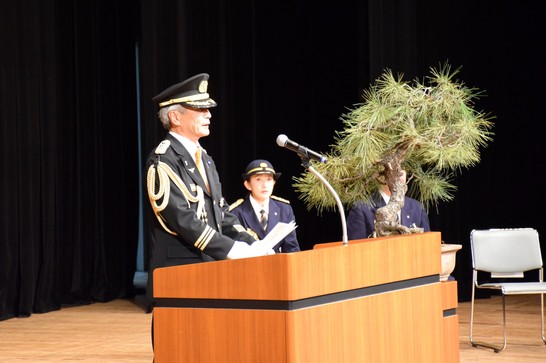 消防団始式は、新たな1年のスタートに当たり、消防団員の士気高揚を図ることを目的として行うものです。