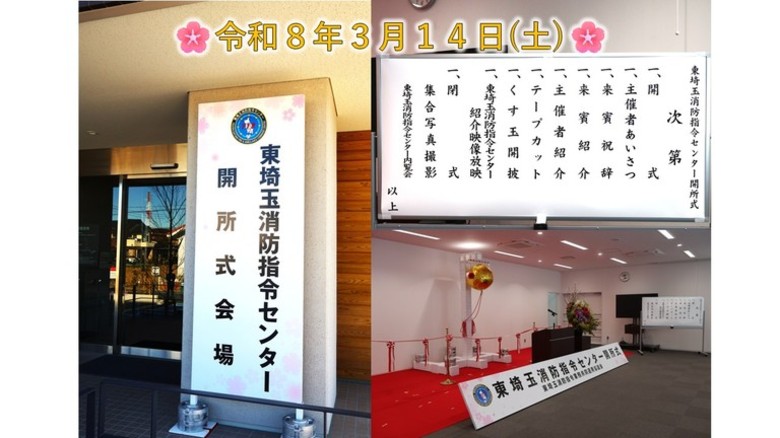 令和8年3月14日(土)、越谷市大字大泊地内に建設した東埼玉消防指令センターの開所式を執り行いました。